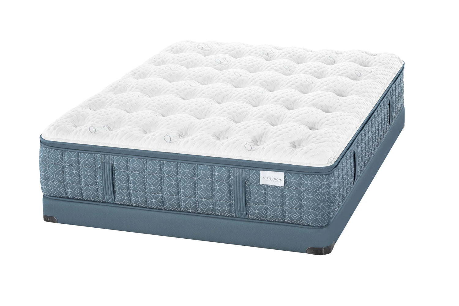 Instead of glueing layers together as most manufacturers do, Aireloom hand-tufts the mattress all the way through. Forty-nine hand-tied tufts sewn all the way through the mattress hold individual comfort layers and the main support coils together without adhesives, allowing each layer to work independently and without restriction. Aireloom tufting pulls the comfort layers and coils inward, essentially spring-loading the bed with lusciously soft and supportive lift.