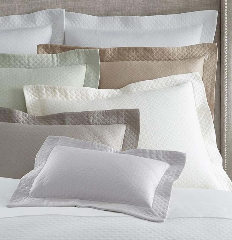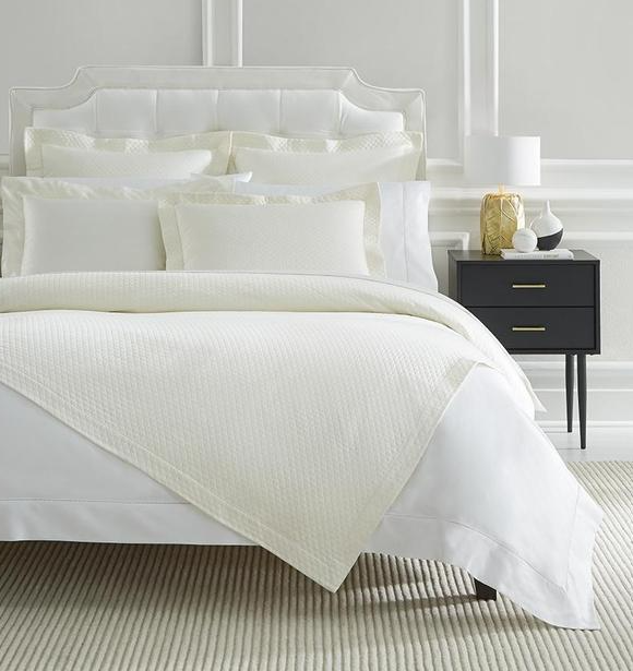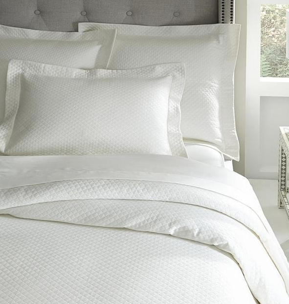 The clean lines of Bari's diamond piqué pattern lends a lovely refinement to the bed, complementing any style. This matelassé has a substantial weight, a lustrous sheen, and a softly finished hand for a timeless classic.