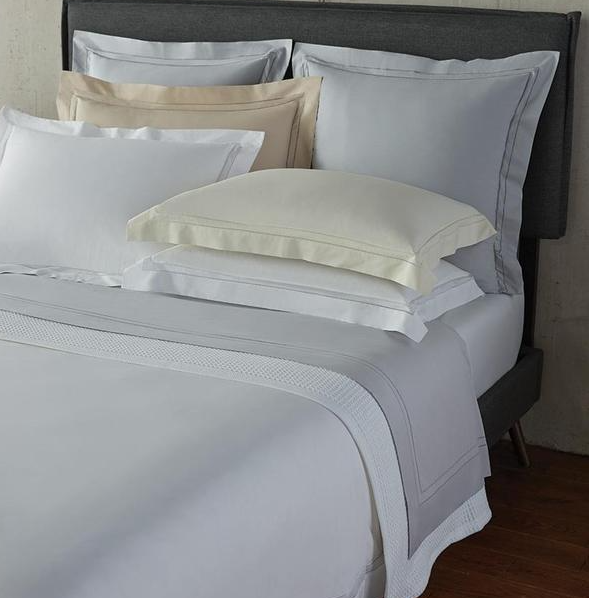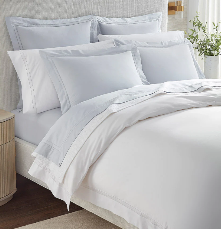 Inspired by minimalist design, which strips away decorative elements to reveal the essential qualities of a piece, Finna’s double hemstitch maintains an understated—and modern—elegance. Its special hand comes from an innovative finishing process, which makes the percale feel super-sleek.