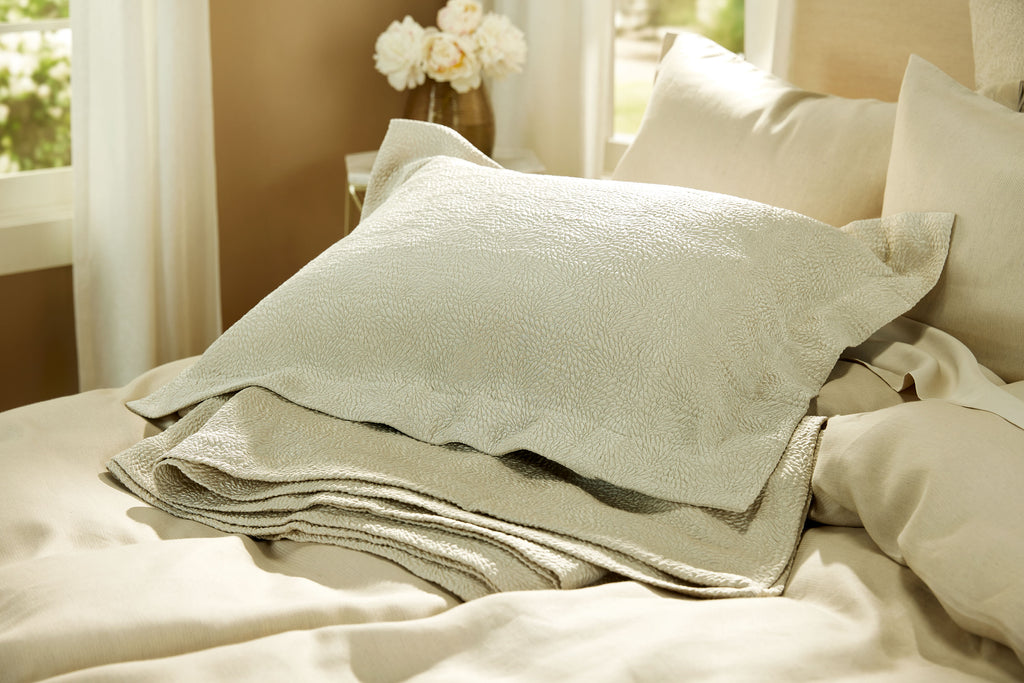 We've added linen to this exquisite silk and cotton boutis to create the luxury of silk, the livability of cotton with the purity of linen. The all-natural line of the Purists bedding is magnificent in every way.